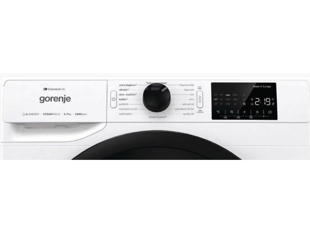 Automatická pračka Gorenje W2PNEI74SA1SW/CZ je zkonstruována tak, aby byla spolehlivá a aby během praní minimalizovala rušení při vašich každodenních činnostech. Výkonný invertorový motor PowerDrive nepřesáhne hranici hlučnosti 76 dB, bezpečné používání spotřebiče podporuje ochrana proti úniku vody a kontrola nadměrného pěnění. Chytrým pomocníkem je pak aplikace ConnectLife, která umožní pračku ovládat pouze pomocí vašeho smartphonu. Aplikace vám poskytne užitečné tipy, poradí s výběrem nejvhodnějšího programu, zkontroluje stav pračky a pomáhá také analyzovat kumulativní úspory vody a elektřiny.