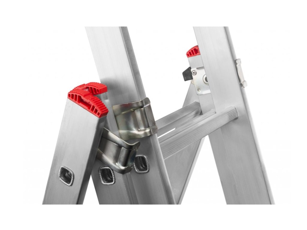 Trojdílný žebřík HOBBY je vyroben z kvalitního odlehčeného hliníku. Díky lisovanému spojení příček s bočnicemi je zajištěná vysoká tuhost a životnost žebříku.