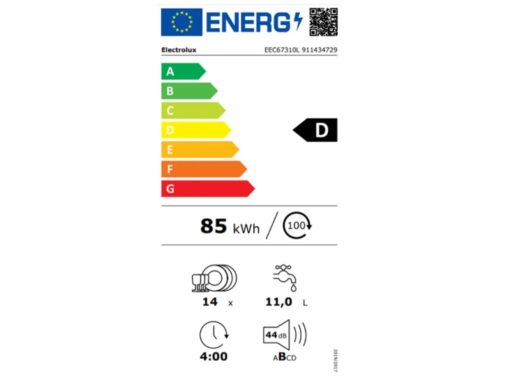 Pokud byste používali jen program eco, za 100 cyklů se spotřeba energie vyšplhá pouze na 85 kWh. Na jeden mycí cyklus spotřebuje myčka 11 l vody, což je mnohonásobně méně, než kdybyste každý kousek nádobí vždy po jídle umývali ručně. Kabel dlouhý 1,6 m se dá společně s vypouštěcí a napouštěcí hadicí Aqua control pohodlně ukrýt na zadní straně. Máte tak jistotu, že nová myčka Electrolux EEC67310L dokonale zapadne do vaší kuchyně.