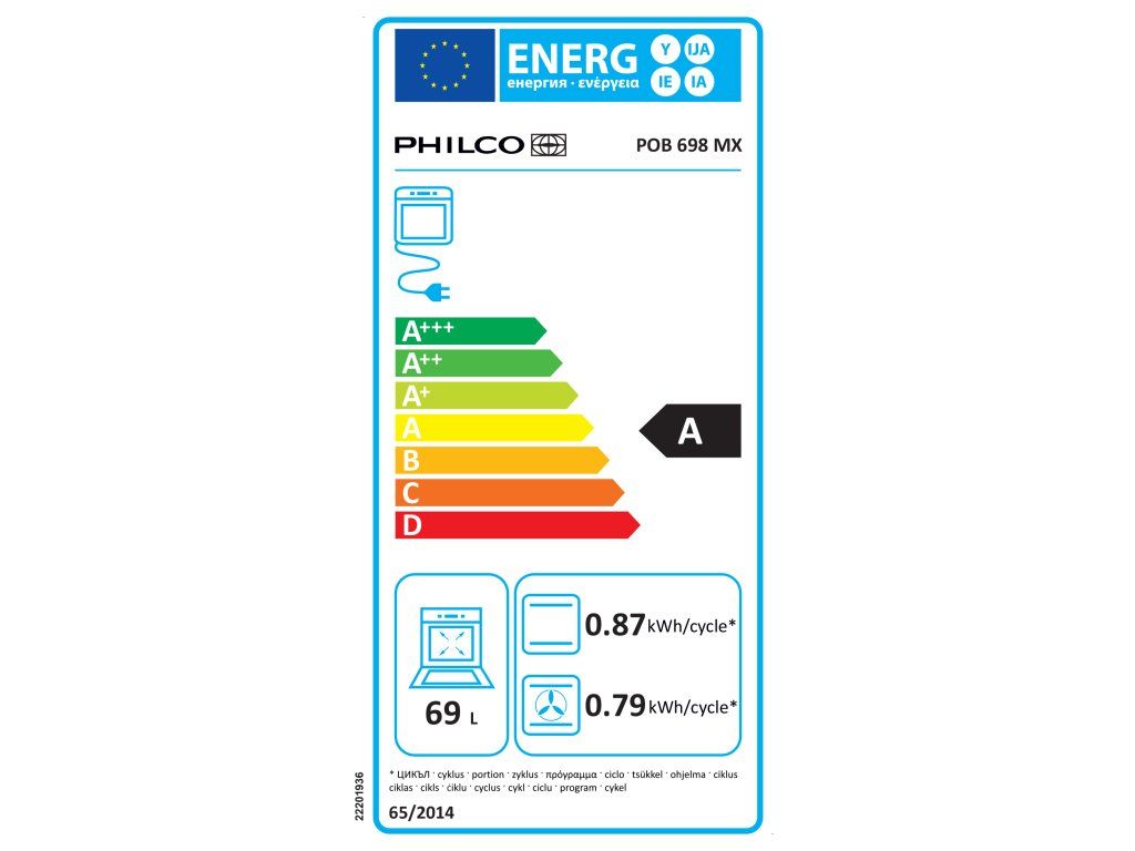 Vestavná trouba Philco POB 698 MX zajistí rychlou a spolehlivou přípravu vašich oblíbených pokrmů. Disponuje objemem 69 litrů a spadá do energetické třídy A. Philco nabídne 7 různých úrovní pro vložení plechu a jednoduché knoflíkové ovládání. S teplotním rozsahem 50 až 250 stupňů si můžete nastavit podmínky pečení dle potřeby a ještě přesnější nastavení poskytne 8 různých funkcí od rozmrazování, statického pečení či grilování po dvojité grilování či rychlý ohřev.