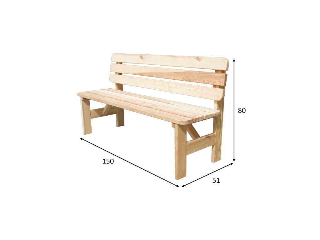 Zahradní masivní lavice vyrobena z borovicového dřeva v přírodní barvě (není povrchově upraveno).