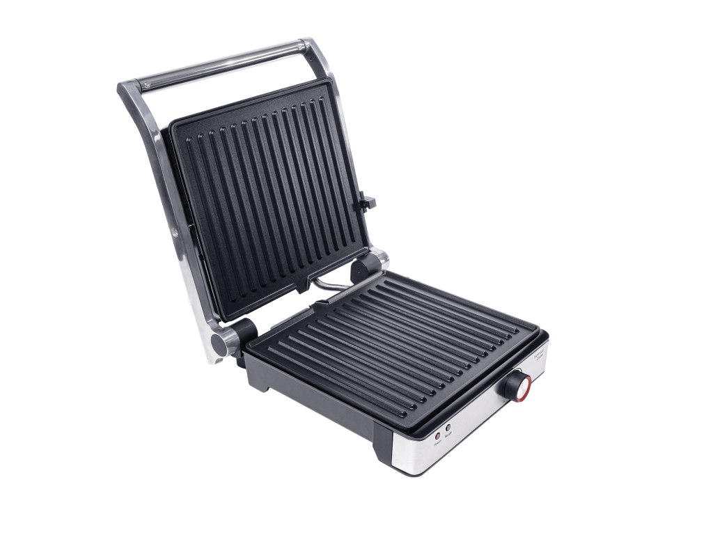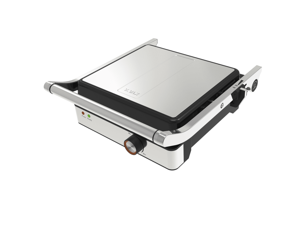 Kontaktní gril Vivax SM-2000X s úctyhodným příkonem 2000 W je všestranným pomocníkem pro milovníky grilovaných specialit. Díky nepřilnavému povrchu grilovacích desek připravíte šťavnaté steaky, ryby, zeleninu nebo zapékané panini bez nutnosti použití velkého množství tuku. Horní deska je nastavitelná podle výšky pokrmu a gril lze navíc zcela rozevřít o 180°, čímž získáte velkou otevřenou plochu pro barbecue s přáteli.
