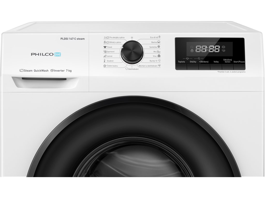 Ovládání pračky je hračka díky dobře čitelnému panelu s českým popisem a přehlednému LED displeji. S hloubkou pouhých 47 cm se snadno vejde i do menších prostor. Vybavena tichým invertorovým motorem s 10letou zárukou, nabízí Philco PLDSI 147 A Steam dlouhodobou spolehlivost. Parní program Steam nejenže sterilizuje prádlo, ale také chrání pokožku malých dětí, alergiků a citlivých osob, což z ní činí ideálního pomocníka pro každou rodinu.