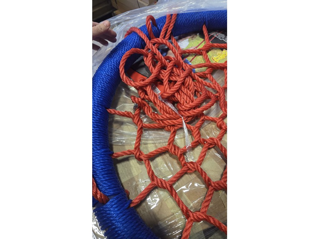 Průměr houpacího kruhu je 85cm. Kruh je kombinaci modré a červené barvy. Kruh je vypleten pevným lanem. Houpačka se může používat pouze v sedě nebo v leže. Nosnost houpačky je maximálně 100 kg nebo pro 1-2 děti. Délka lan je 160cm.